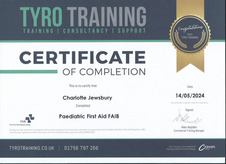 First Aid and Paediatric First Aid certificates held
